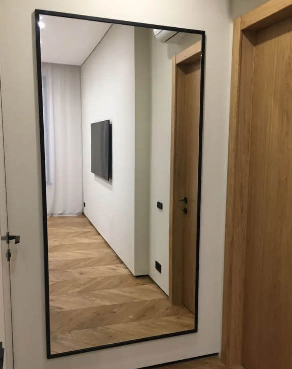 Зеркало настенное напольное большое Glass Memory Parallax в полный рост 200x100 см в металлической раме черного цвета в Ноябрьске